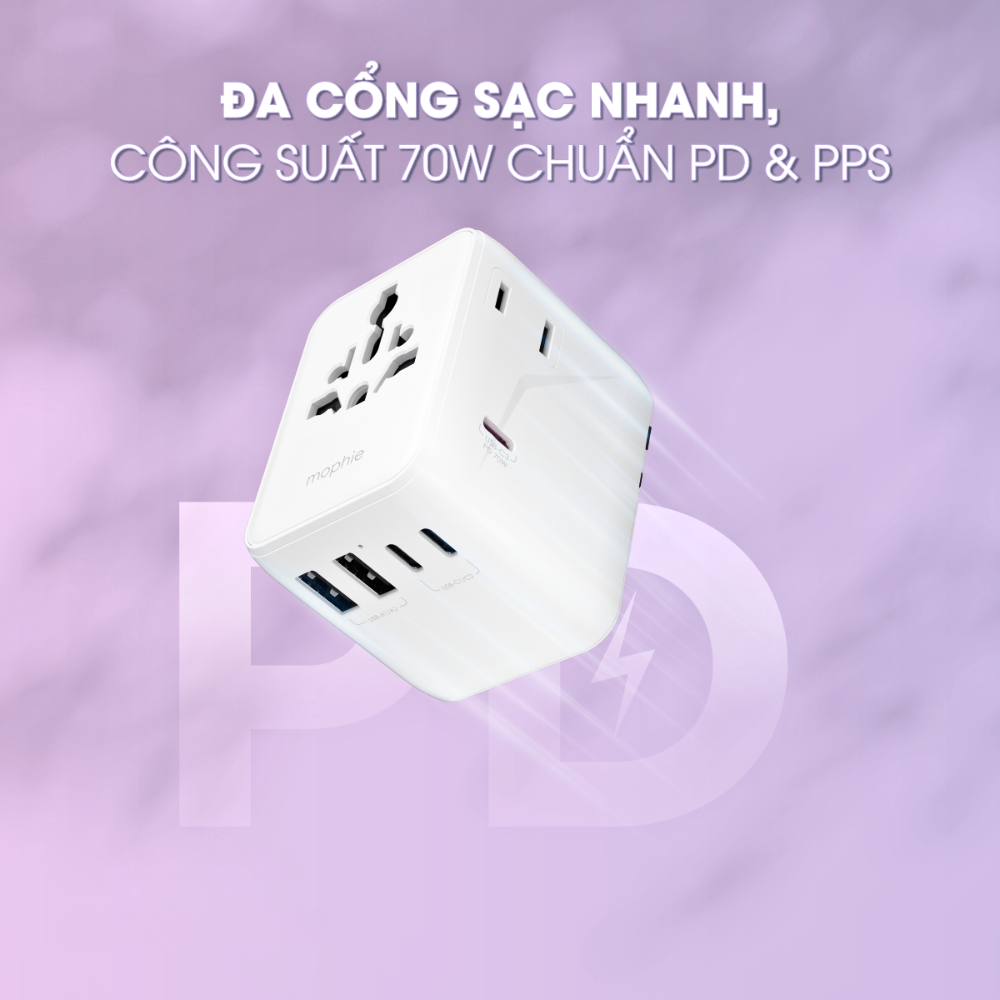 Với tổng công suất đầu ra lên đến 70W, Mophie Essentials 3C2A 70W mang đến tốc độ sạc nhanh chóng và hiệu quả vượt trội. Bạn sẽ không còn phải chờ đợi hàng giờ để thiết bị của mình đầy pin. Công suất 70W này không chỉ đủ mạnh để sạc nhanh điện thoại và máy tính bảng mà còn có thể cấp nguồn ổn định cho nhiều mẫu laptop hiện đại qua cổng USB-C Power Delivery. Điều này đặc biệt hữu ích khi bạn đang di chuyển, cần sạc gấp cho thiết bị để không bỏ lỡ công việc hay khoảnh khắc quan trọng. Sự kết hợp giữa tốc độ và hiệu quả biến Mophie Essentials thành một “trạm năng lượng” bỏ túi thực sự.