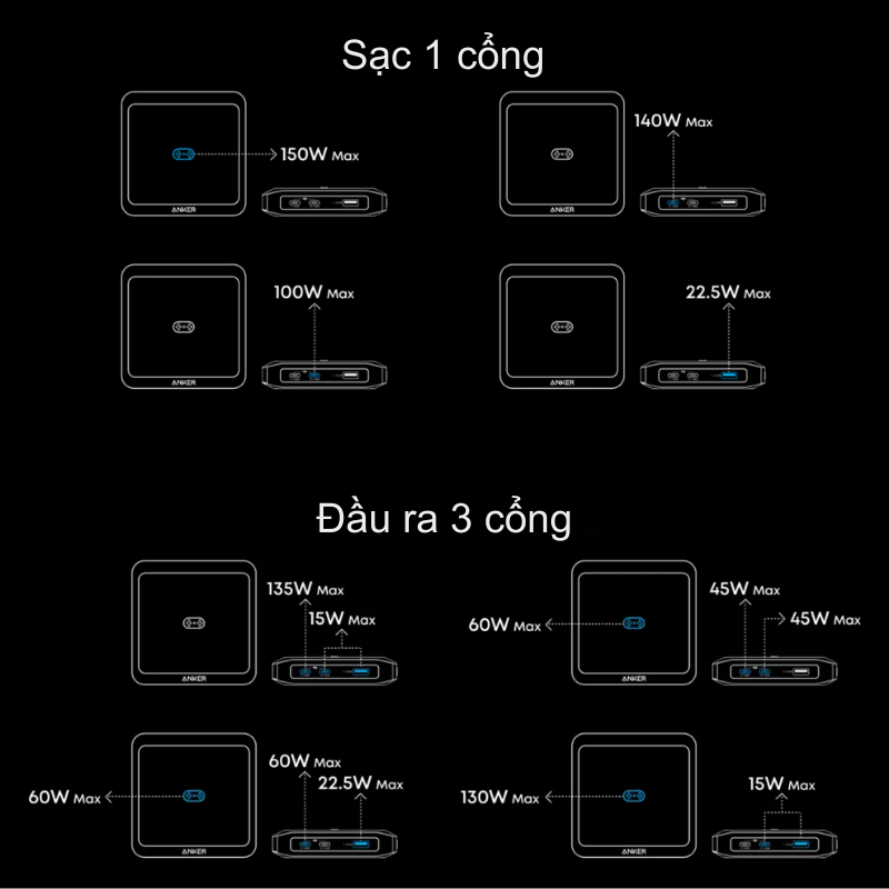 Mặc dù có kích thước vô cùng khiêm tốn, nhưng Anker A1903 lại sở hữu sức mạnh đáng kinh ngạc. Với tổng công suất lên đến 150W, thiết bị này đủ sức thay thế hoàn toàn các bộ sạc cồng kềnh khác trên bàn làm việc của bạn.