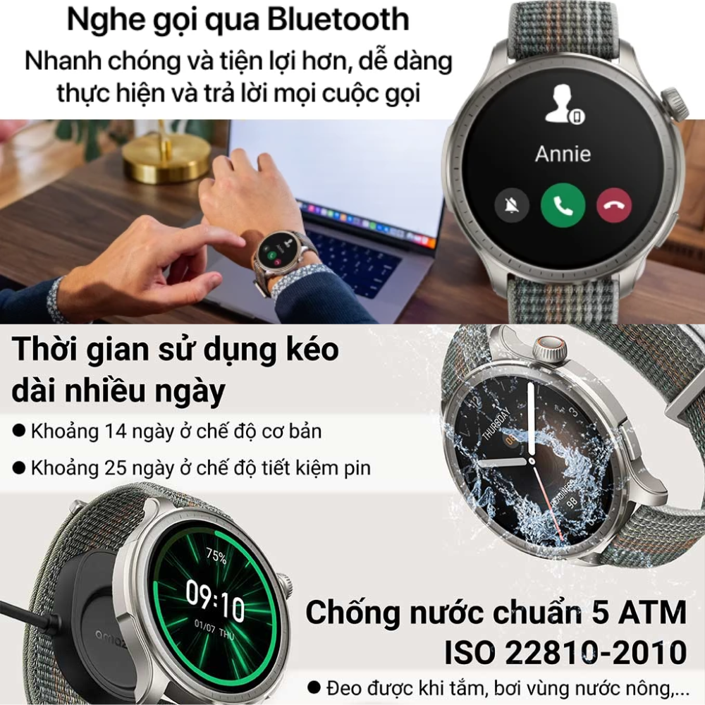 Tính năng đặc biệt | Gọi điện Bluetooth, trợ lý giọng nói Alexa Offline, bộ nhớ nhạc cục bộ, ứng dụng mini Zepp, công cụ thiền và thư giãn |