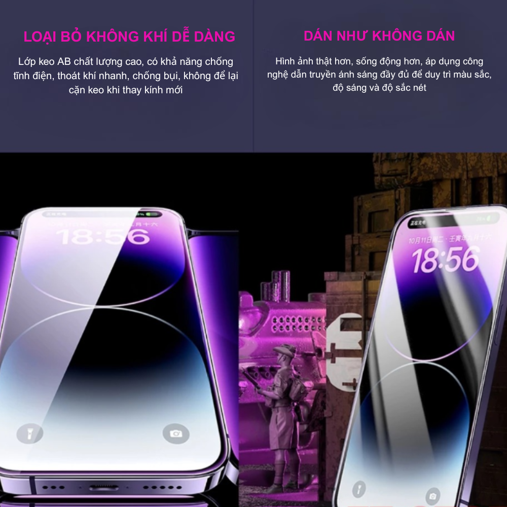 Một trong những ưu điểm nổi bật nhất của kính cường lực WTP-068 là độ trong suốt tuyệt đối. Công nghệ chế tạo tiên tiến đảm bảo rằng WTP-068 không làm giảm chất lượng hiển thị của màn hình điện thoại. Màu sắc vẫn giữ được độ chân thực, sắc nét, và độ sáng không bị ảnh hưởng. Bạn sẽ không nhận thấy bất kỳ sự khác biệt nào về chất lượng hình ảnh khi sử dụng WTP-068. Điều này cực kỳ quan trọng đối với những người yêu thích trải nghiệm xem phim, chơi game hay chỉnh sửa ảnh trên điện thoại, đảm bảo rằng mọi chi tiết đều được hiển thị một cách rõ ràng và sống động nhất.