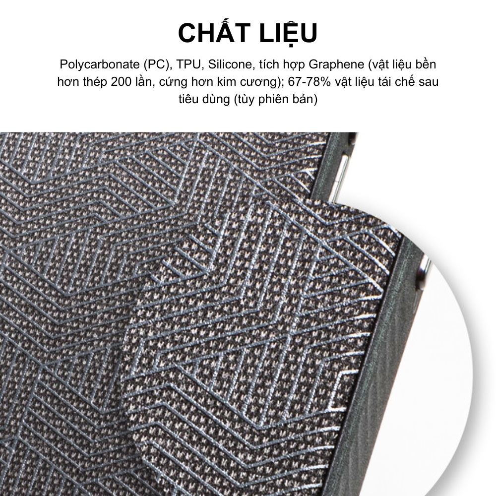 Tính năng nổi bật | Tích hợp công nghệ D3O® Bio, Tương thích MagSafe, Chống ố vàng (tùy phiên bản), Làm từ vật liệu tái chế, Viền nâng bảo vệ màn hình & camera, Thiết kế mỏng nhẹ & tinh tế |