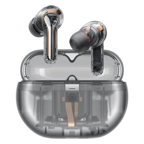 SoundPEATS Capsule 3 Pro phiên bản trong suốt sở hữu thiết kế in-ear với housing nhựa bóng, lộ linh kiện bên trong, tạo vẻ ngoài hiện đại, sang trọng. Mỗi tai nghe nặng 5g, kèm eartips silicone (S/M/L) mềm mại, giảm áp lực ống tai, thoải mái khi đeo lâu, phù hợp chạy bộ, gym. Hộp sạc (50.07×67.31×25.9mm, 111g) có logo mạ vàng, đèn LED báo pin (Xanh: 50-100%, Vàng: 10-49%, Đỏ: dưới 10%). Công nghệ SoundPEATS Capsule 3 Pro đạt IPX4 chống nước, mồ hôi, mưa nhẹ, đảm bảo độ bền.