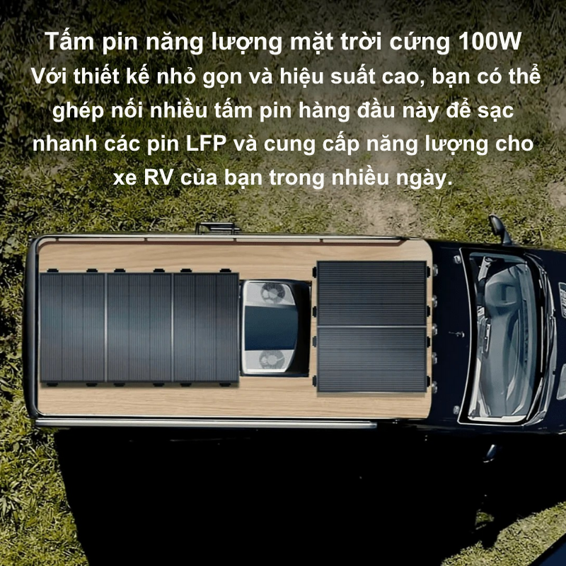 Sự linh hoạt trong ứng dụng là một trong những điểm mạnh của Tấm pin năng lượng mặt trời EcoFlow Rigid 100W. Với kích thước nhỏ gọn và trọng lượng nhẹ, sản phẩm này dễ dàng được vận chuyển và lắp đặt ở nhiều vị trí khác nhau. EcoFlow Rigid lý tưởng để lắp đặt trên nóc xe RV hoặc xe camper, cung cấp năng lượng liên tục cho các thiết bị trên xe trong suốt hành trình. Đối với những người đam mê cắm trại, dã ngoại, đây là nguồn điện sạch giúp sạc điện thoại, máy tính bảng, đèn pin và các thiết bị nhỏ khác. Bạn cũng có thể sử dụng EcoFlow Rigid như một phần của hệ thống điện dự phòng khẩn cấp tại nhà hoặc tại các cabin hẻo lánh. Khả năng kết nối dễ dàng với các trạm điện di động EcoFlow càng làm tăng tính tiện dụng của EcoFlow Rigid.
