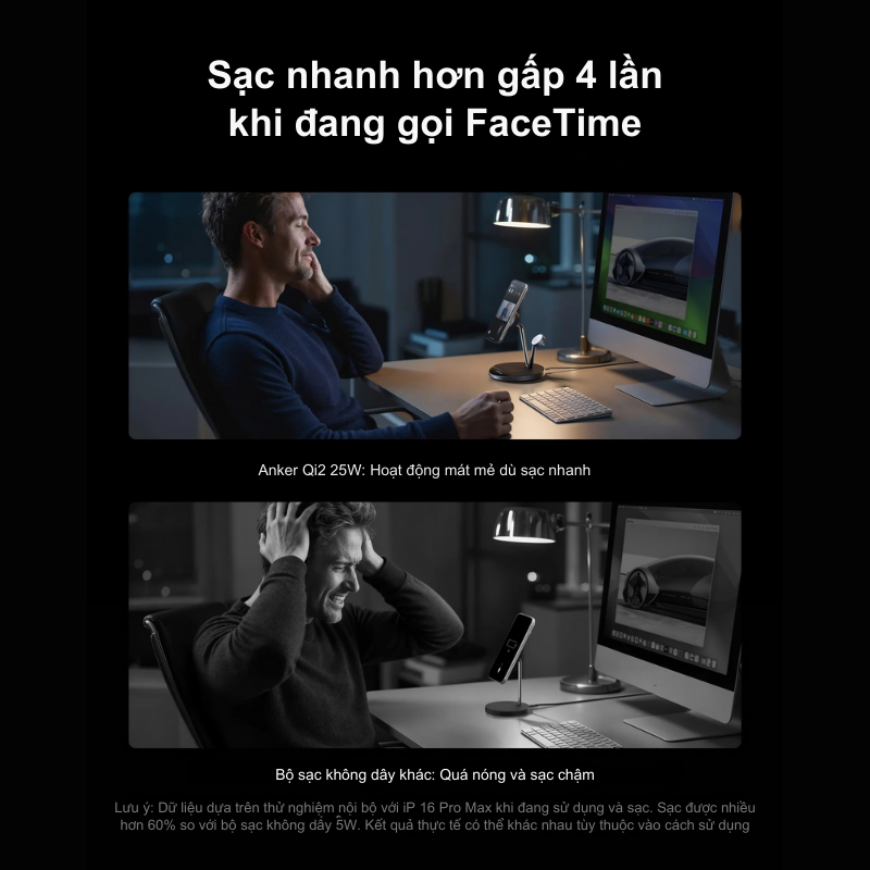 Điều này có nghĩa là bạn có thể nạp năng lượng cho chiếc iPhone 15/16 Series của mình nhanh gấp đôi so với các bộ sạc đời cũ. Anker Prime B25X7 đảm bảo rằng dế yêu của bạn luôn sẵn sàng năng lượng cho mọi cuộc gọi hay tác vụ quan trọng chỉ sau một thời gian ngắn đặt lên đế sạc.